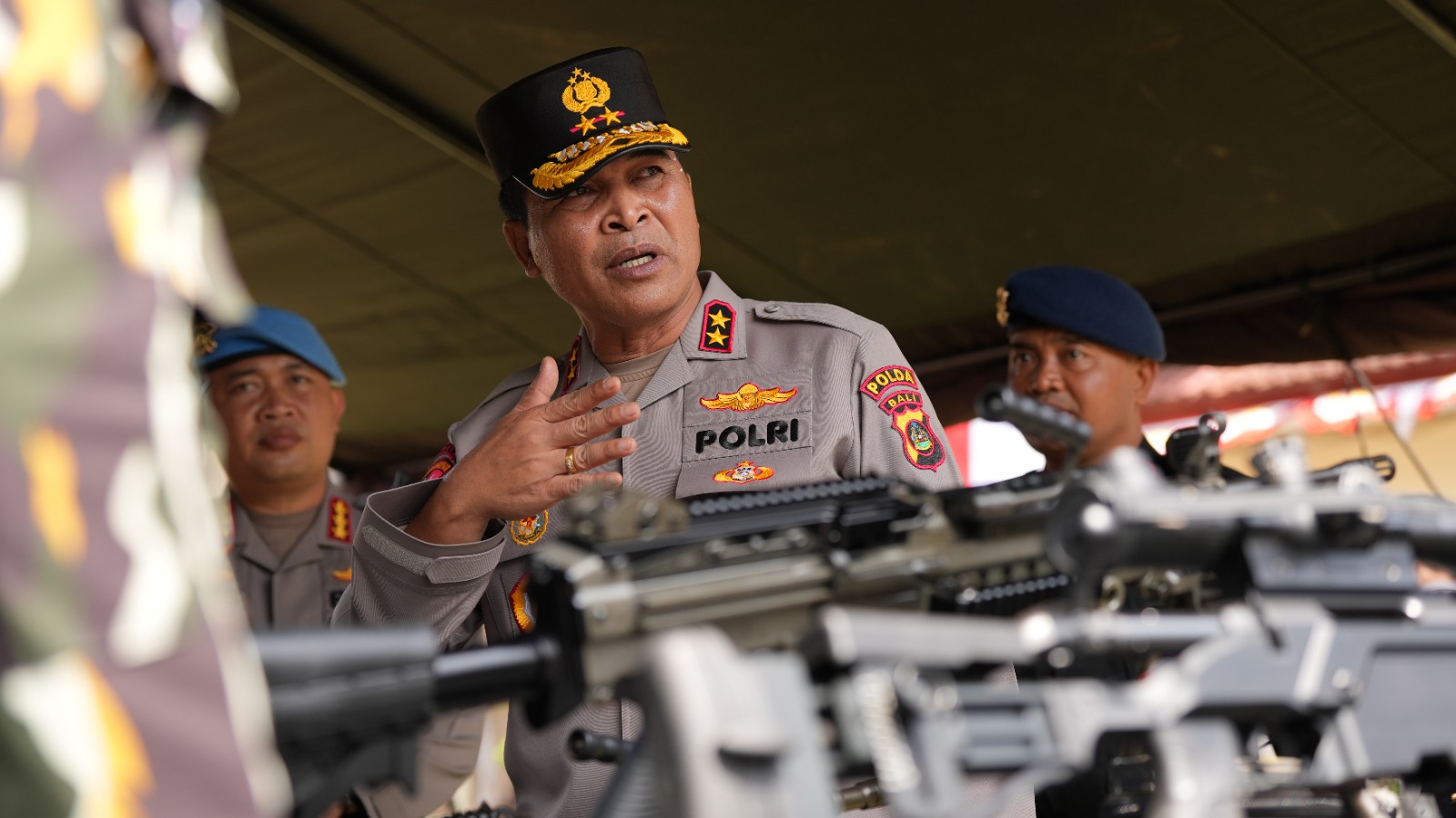 Bali-Kapolda Bali Irjen. Pol. I Bagus Kd Putra Narendra, S.I.K., M.Si., didampingi oleh Dir Lantas Polda Bali Kombes. Pol. Ruminio Ardano, S.I.K., Dansat Brimob Polda Bali Kombes. Pol. Firdaus Wulanto, S.I.K., Kabid Propam Polda Bali Kombes. Pol. I Ketut Kusmayadi, S.I.K., S.H., saat hadir untuk Meninjau Mako Brimob Batalyon C Pelopor Gilimanuk, Jembrana, Senin (24/7/2023).